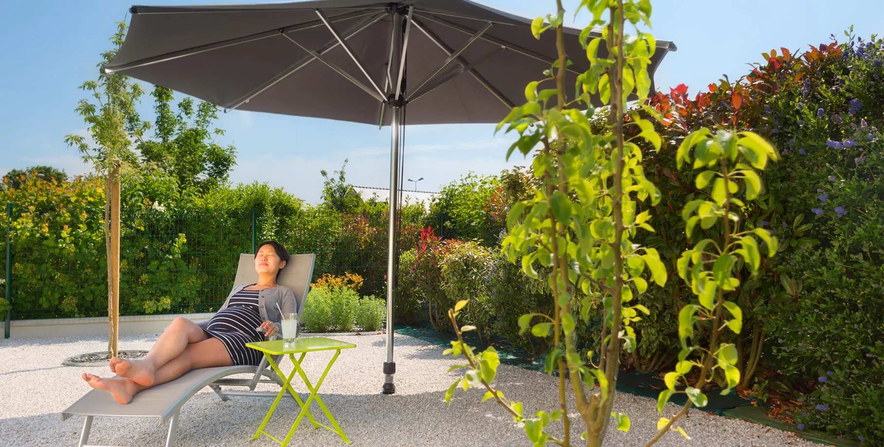 vous assure un parasol stablisé, qui s'harmonise avec le décor.