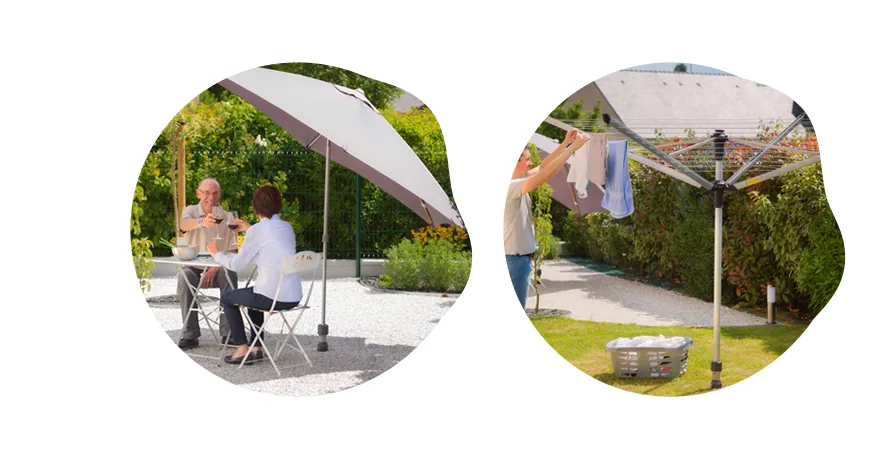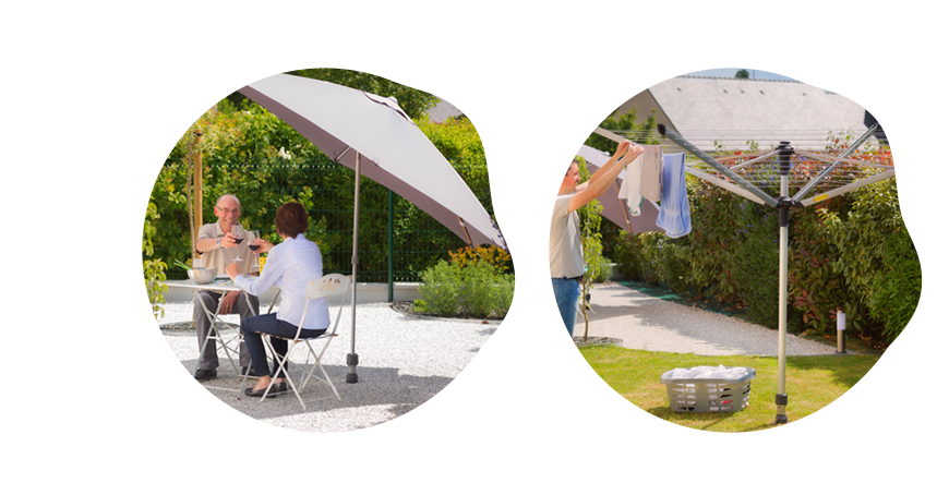 Dans le cas de petits espaces extérieurs, pour notamment les maisons de ville, vous pourrez ainsi alterner vos équipements sur une unique base d'ancrage afin de venir y clipser par exemple, un étendoir à linge le matin, un parasol l'après-midi puis une borne solaire Gard&Rock en soirée. En d'autres termes, vous pourrez vous procurer de multiples activités même dans un espace réduit.