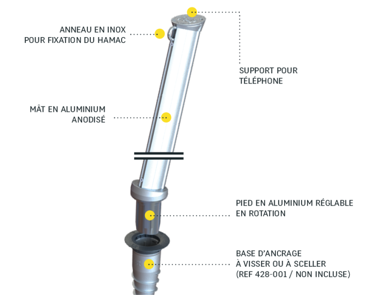 Vous aurez également la possibilité de régler l'orientation de votre poteau fixé sur votre base d'ancrage grâce à un système d'indexation situé au niveau de son pied.