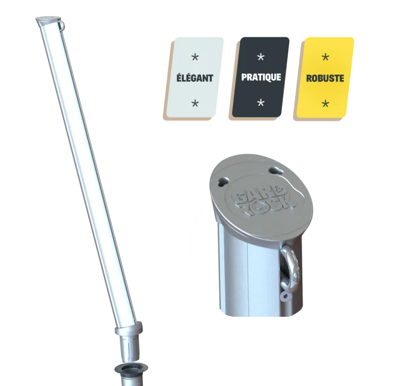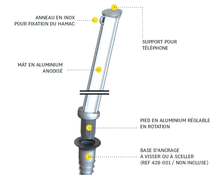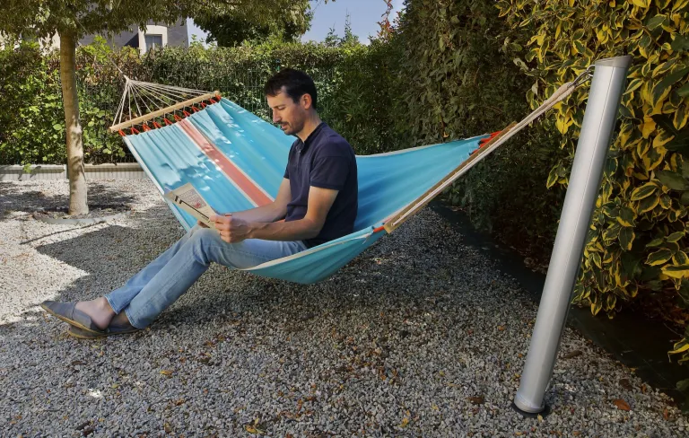 De conception française, fabriqué en aluminium anodisé et en alliage chromé, le poteau Gard&Rock pour la fixation de hamac (une seule personne, charge totale 100Kg max) est conçu pour durer. De plus, son inclinaison permet d'assurer non seulement plus de solidité, mais aussi une belle intégration dans un extérieur minéral ou végétalisé.