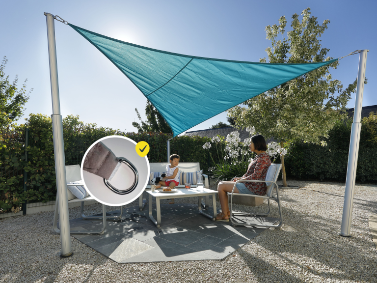 Les voiles d'ombrage pourront être directement fixées à l'aide d'un support existant (façade de maison, véranda,..) mais aussi avec les mâts télescopiques Gard&Rock pour augmenter les possibilités d'emplacement. Vous pourrez ainsi créer un maximum d'ombre pour mieux profiter de votre jardin.