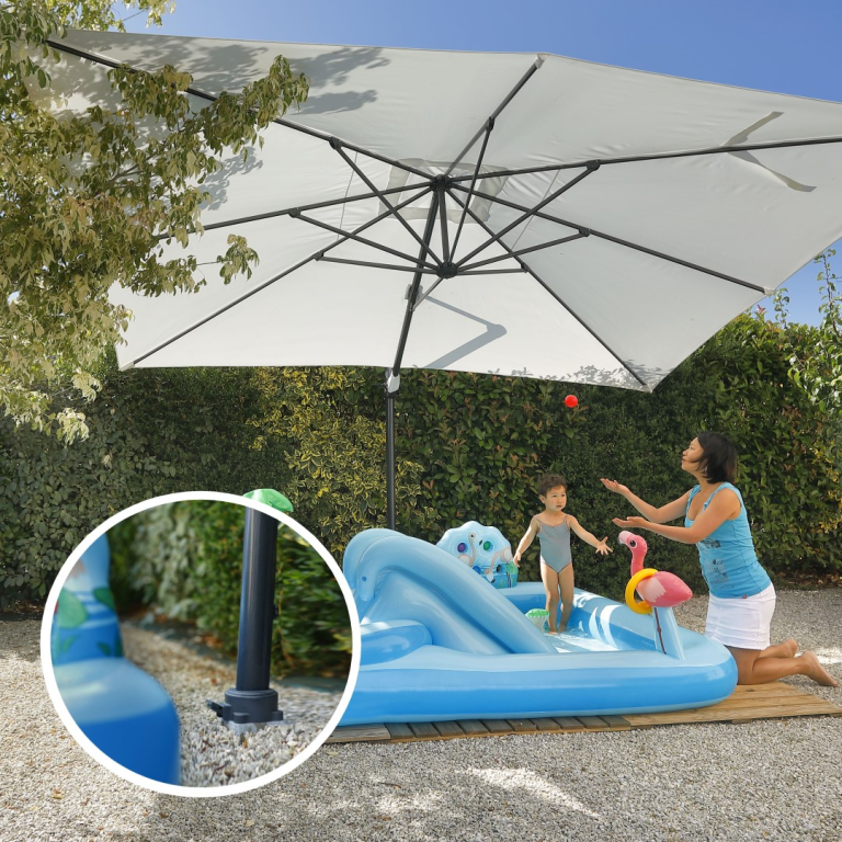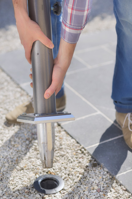 ☛ NOTRE CONSEIL: En cas de sol pas assez stable et pour les plus gros parasols, nous préconisons de sceller la base d'ancrage dans du béton. Le mode opératoire est indiqué sur la notice et nous vous invitons à visualiser cette vidéo: