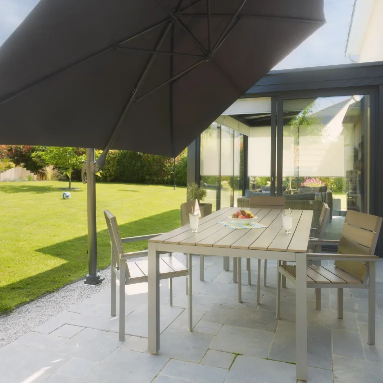 Cette base d'ancrage pourra être vissée ou scellée sur tous les types de sol, qu'ils soient plats ou inclinés! (stabilisé, graviers, terre, pelouse, béton,...). Et pour un bénéfice optimal, nous recommandons d'en implanter plusieurs afin de ne pas vous limiter qu’à un seul endroit. Vous pourrez ainsi créer un espace ombragé au fond de votre jardin afin de contempler votre maison, vous installer dans une zone plus aérée ou encore vous reposer proche de votre végétation.