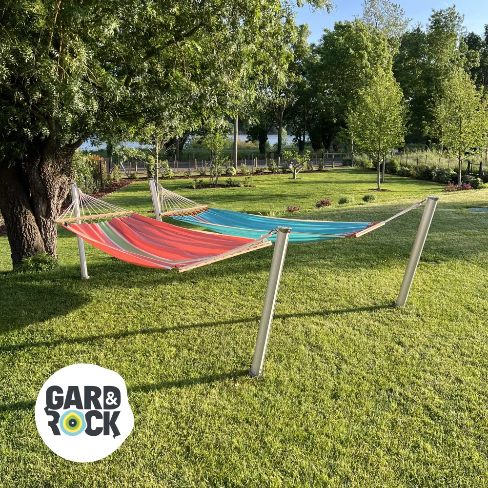 Les poteaux GARD&ROCK permettent une fixation rapide et facile de votre hamac partout sur votre espace extérieur (terrasse, pelouse, abord de piscine...). Notre système breveté offre un ancrage amovible afin de moduler votre aménagement ou de libérer votre terrain en un instant. Associé ou non avec un arbre, vous multiplierez vos chances de trouver la place idéale pour vous reposer en toute tranquillité. Design et robuste, vous bénéficierez d'un produit de haute qualité et de conception française. Un accessoire indispensable pour passer d'agréables moments dans votre jardin.