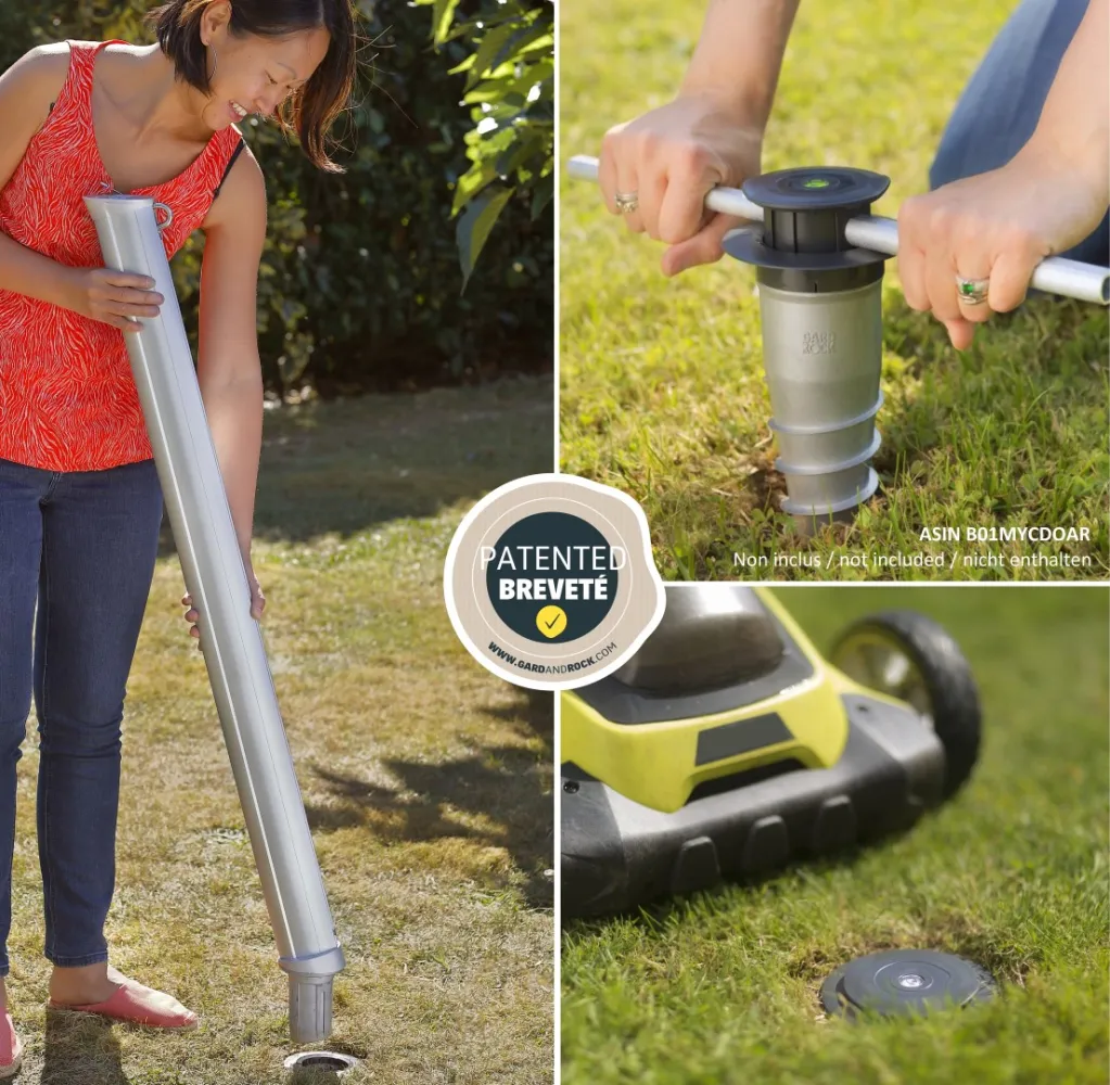 Pratique, elle permet un aménagement rapide de votre jardin au gré de vos envies. Couplée avec les produits de la gamme évolutive Gard&Rock, vous pourrez en un instant, fixer, déplacer et ranger vos équipements de plein air (parasols, tonnelles, voiles d'ombrage, hamacs, étendoirs à linge, nichoirs, équipements de sports...). Design et discret, le pied à ancrer s’intégrera avec harmonie dans le paysage.